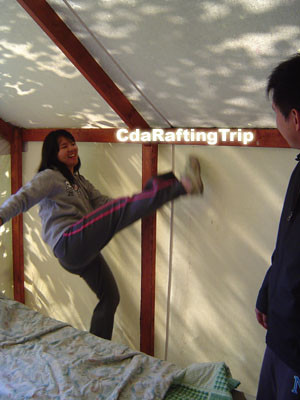 *我突然覺得帳棚外的樹葉影子很美,想叫Jenndy在窗邊讓我拍一張,有沒有窗前幽夢的fu啊XD*