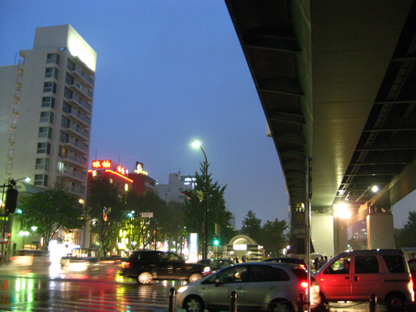 後來吃完飯後,我們就準備走回《榮》地下鐵,這時外面的雨下的不小,