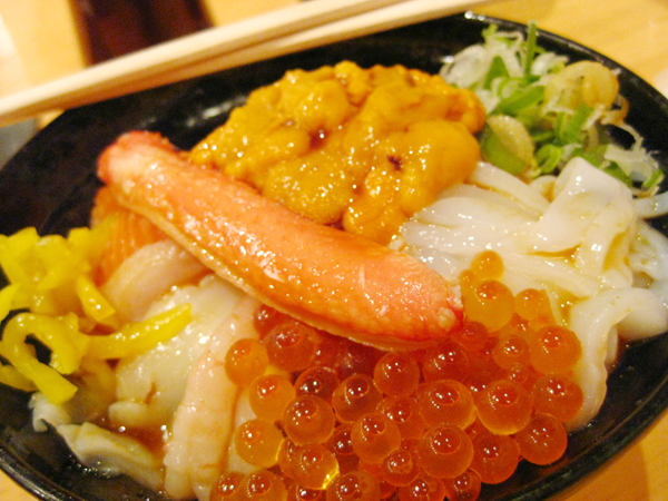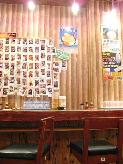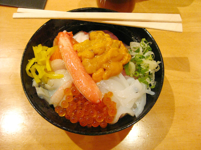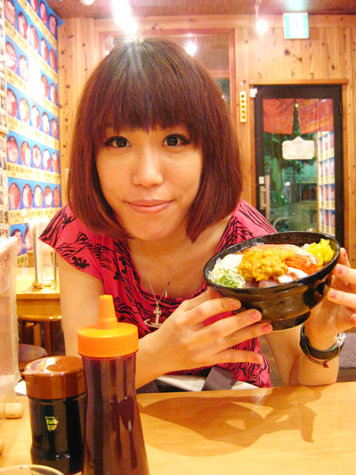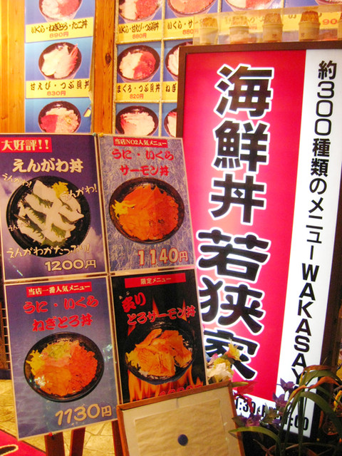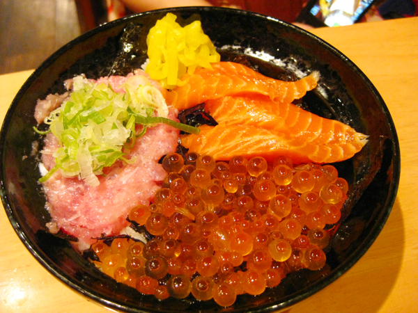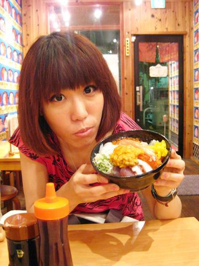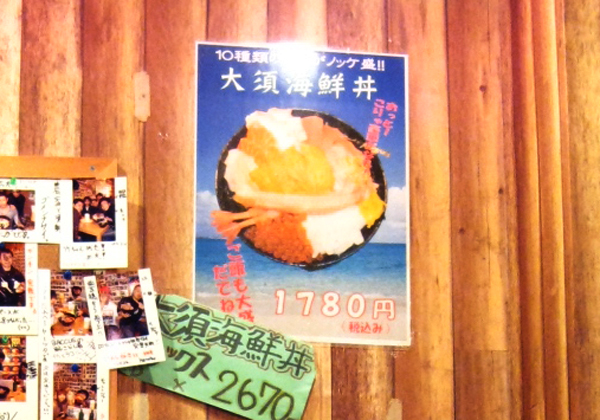 所以我點了一個在台灣我從沒想過要點的餐,牆壁上海報貼著幾十種食材組合成的生魚片飯,