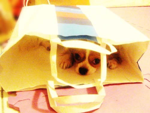 後來我整理了幾個小時物品,NINJA仍舊在紙袋內不出來,除非是AKI跑進去紙袋內一起擠,
