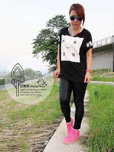 加個個性腰帶,很快的運動風T恤也能穿出不一樣的感覺。