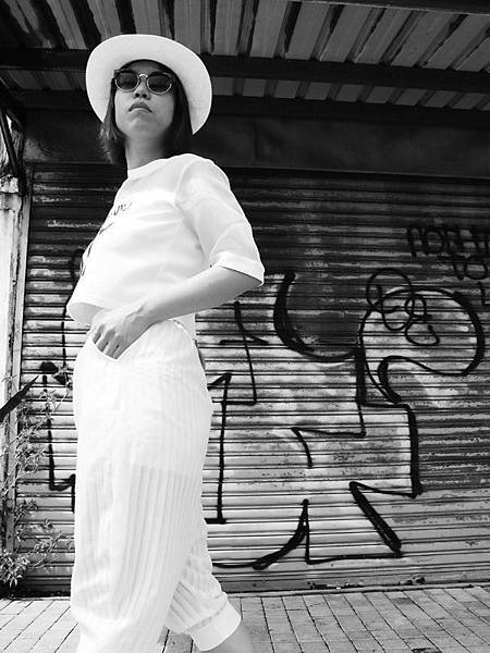 嘿嘿,我依舊找了可以穿到肚臍的哈倫褲,顏色找一樣是白色的,整體就能感覺上衣與褲子好像是一家人似的。
