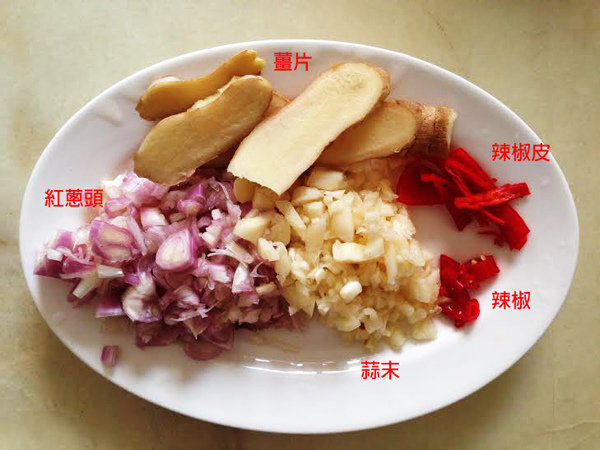 步驟1:放紅蔥頭、蒜炒香、辣椒