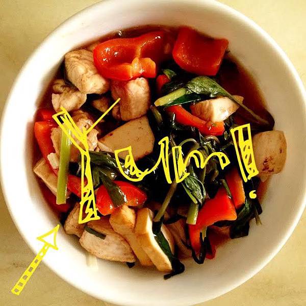 (如果不敢吃口感太脆的紅椒可在豆干那一個步驟放入)