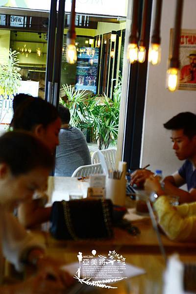我去的這間在BTS Chong Nonsi站附近,走路要10分鐘以上喔,在大太陽底下走覺得10分鐘以上簡直要我命啊,而且會覺得好像不止10分鐘以上,應該要20分鐘的熱感錯覺,不過為了想一探究竟的好奇心驅使下,我還是硬著頭皮走到了這家店。店內的空間頗小的,光是中間的咖啡吧台就佔了很大空間。