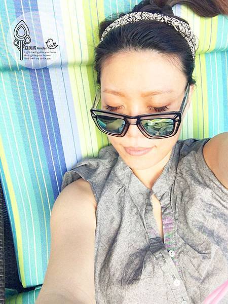 趁著11點出發前,用完早餐還特地跑到泳池邊躺了一下,拍完這張照片我就不小心睡著了。
