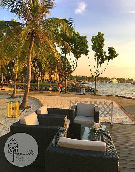 後來又跟我沙巴姊姊相約晚餐,因為晚餐要吃當地有名的平價CP值高『大茄來海鮮餐廳』,但餐廳六點才開,當時時間還早,沙巴姊姊就帶我們去市中心幾家漂亮的飯店走走,說到這裡大家應該會覺得很奇怪,飯店有什麼好走的,大家可別忘了這裡到處都有漂亮的沙灘、夕陽美景,漂亮的飯店就有靠近海的步道,這時正好可以來看看美麗的夕陽。