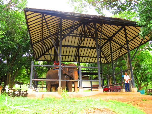 從餐廳眺望去遠方有人正在坐大象遊莊園呢!