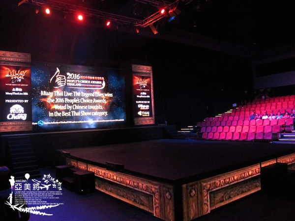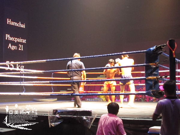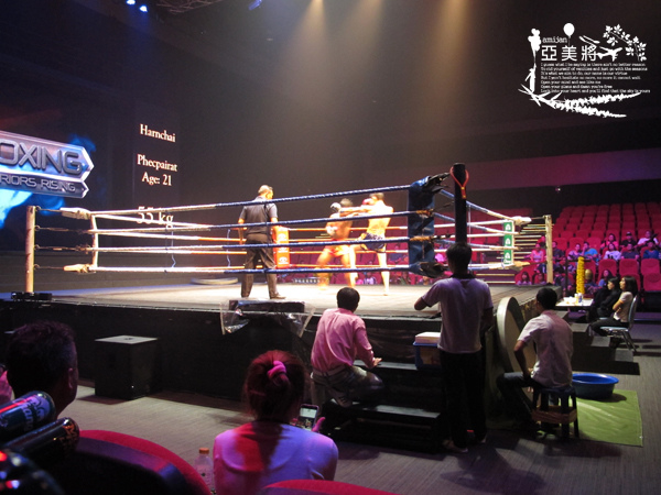 如果你有充足的時間絕對要來欣賞一下泰拳秀呀,在Asiatique碼頭夜市的4號倉庫這裡有泰拳秀(Muay Thai)喔,我覺得好新鮮有趣喔,因為我自己也有去上泰拳課,心想有一天一定要來看看泰拳秀,結果這次終於有機會來看了,但是啊,請大家不要擔心泰拳秀會兇殘、怕見血...之類的,其實這個泰拳秀一開場的時候會先以舞台劇方式來演繹泰拳的由來,我只能說燈光、音響、特效實在太讚啦,絕對有讓你身在其境的感覺啊,而且看著泰拳一路以來的演化,在感情戲當中我的眼眶居然有淚在打轉啊!