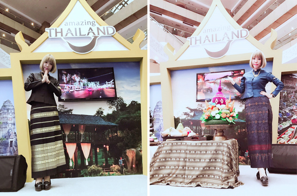 有個小故事想說說,在2016年11月在台北旅展的泰國觀光局當主持人,當時也是穿了泰國服飾,只能說我的金頭毛跟服裝一點違和感也沒有耶!而且說實在的,我知道為什麼泰國人姿態都那麼優雅了,因為裙子太窄不方便動作太大,所以任何動作都是慢慢地、輕輕地、小小地,這樣一來就能化身優雅的泰國人了!所以結論是...我是不是以後要多穿泰國服飾才能增加優雅感?(哈哈)