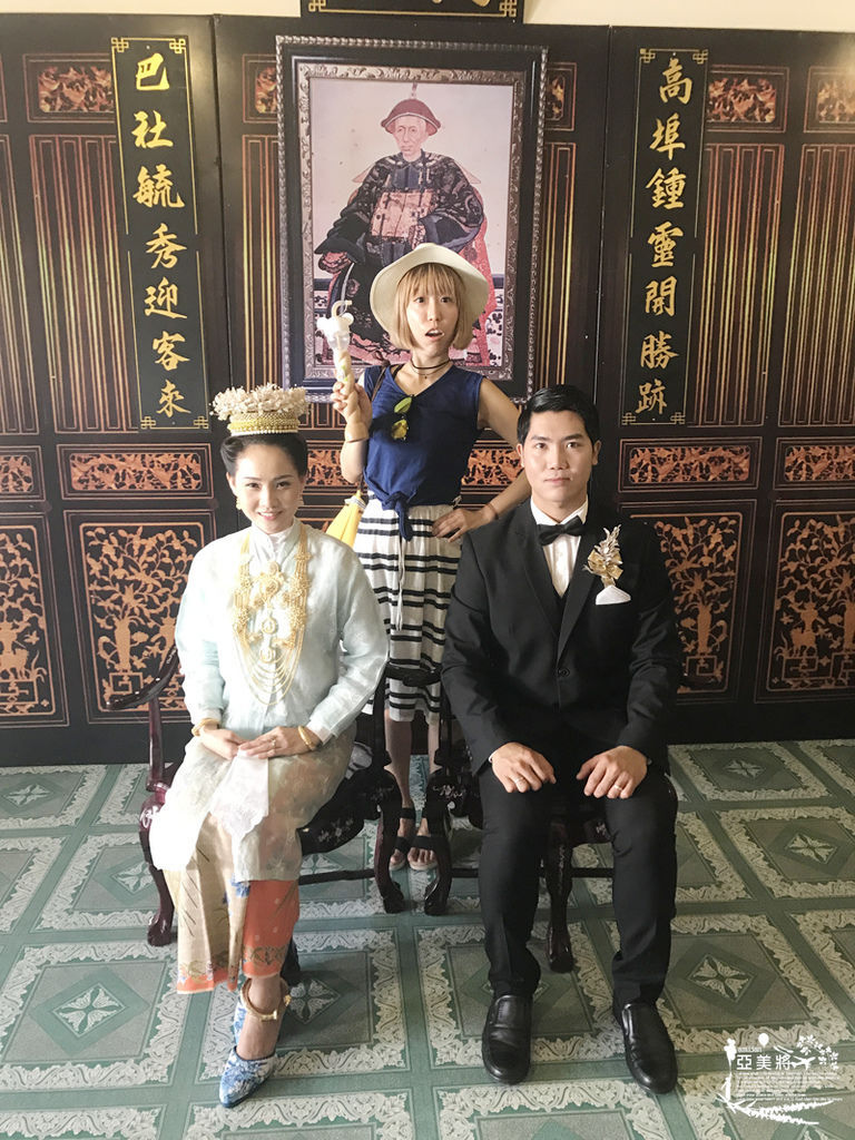 其實這間『峇峇』是一個當地傳統服飾的小店,而這樣的服飾文化叫做『娘惹』,如果你想要像我一樣體驗一下當個『娘惹古人』的話是需要預約喔,另外我發現娘惹服裝的顏色都好多彩又粉嫩,有點不像泰國傳統的鮮豔顏色,衣服的料子也比較硬挺一些,泰國統傳服飾的布料都比較柔軟些,後來聽導遊說才知道原來這跟檳城人來到攀牙這有關係。認真覺得這樣的色彩配上我的淺髮色覺得一切都好合理喔!