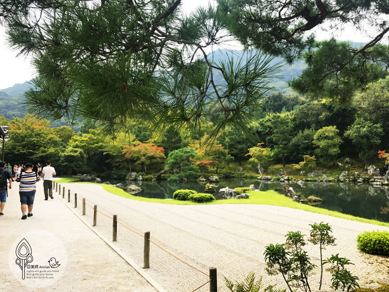 在竹林之道的路上有『大本山天龍寺』,漫步在小碎石中,走累了就隨意的坐在石板凳上,感受一下天龍寺中寧靜氣息,只可惜現在楓葉還未完全轉紅,若是在楓葉季或雪季來,我想這美景一定讓人永生難忘。最後想跟大家說,如果來到這記得買個門票去法堂天井看看雲龍圖,那隻龍栩栩如生的在天花板上,無論你哪個角度看牠,牠都像一直在盯著你看你喔!