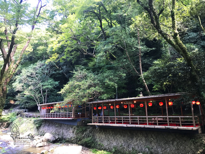 走到一處山林中就能看見一排紅燈籠掛在那,在這可先享用精緻海鮮料理,一邊用餐一邊聽著溪流聲,再加上微微的風吹撫著,天啊,好幸福喔!我相信接近楓葉季時這裡一定一位難求,所以若想要來這用餐的話,請記得要先預約喔!