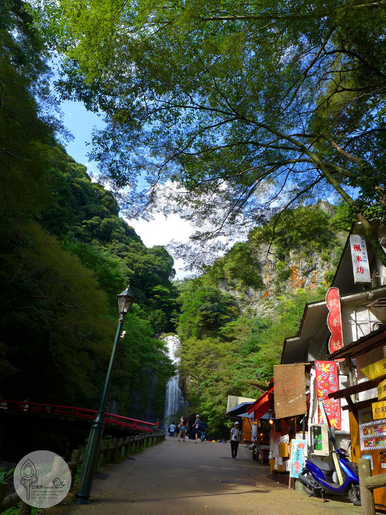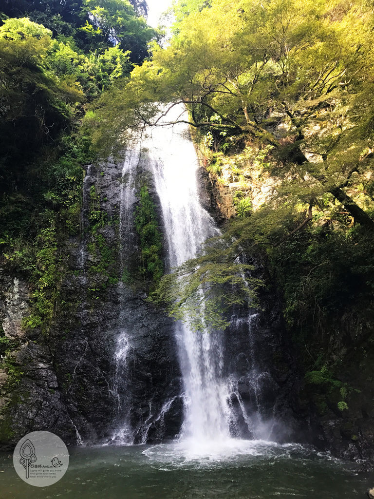 箕面算是大阪的近郊,搭乘阪急箕面線就可到達,今天算是郊遊爬山日,通常爬這樣的山不會太熱,一邊和朋友們聊天一邊爬山也算滿輕鬆的,首圖就是我今天的目的地『箕面瀑布』,據說這裡是為了紀念明治天皇登記百年而設立的,它位於大阪北部「明治森林箕面國家公園」內,是日本最古老森林公園,這裡以紅葉和瀑布聞名,我這個時節去楓葉還綠著臉裝害羞,可惜沒能欣賞美麗楓葉紅啊!