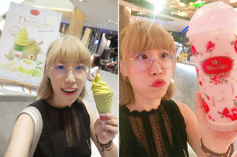 ↑完全不管大姨媽痛不痛了,我就是要一口Matcha Durian抹茶榴槤冰一口玫瑰奶茶!